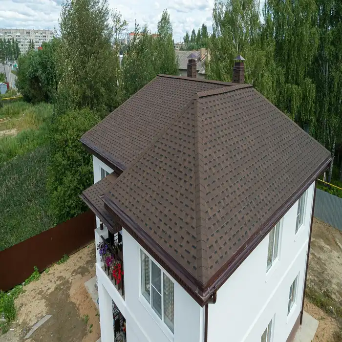 Многослойная черепица Технониколь Шинглас Ранчо Коричневый - это высококачественный материал, предназначенный для кровли и облицовки зданий. Он отличается прочностью, долговечностью и эстетическим внешним видом. Черепица имеет многослойную структуру, состоящую из стекловолоконной основы, асфальтового покрытия и минеральных гранул. Это обеспечивает надежную защиту от влаги, ультрафиолетовых лучей и других неблагоприятных погодных условий. Коричневый цвет черепицы Ранчо придает зданию элегантный и стильный вид, а также позволяет гармонично вписаться в окружающую среду. Установка черепицы Технониколь Шинглас Ранчо Коричневый производится с помощью специальных гвоздей или клея, что обеспечивает простоту и быстроту монтажа. Этот материал является идеальным выбором для тех, кто ценит качество, надежность и эстетику.